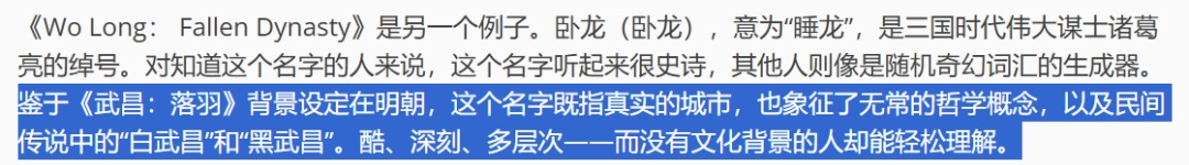 另外,也别太在意他们把《卧龙:苍天陨落》当中国游戏,你大可以把这当作是“外国佬屁都不懂”的案例之一——但在他们讨论的具体氛围里,这其实没有太大的问题,甚至还是强有力的证明之一。