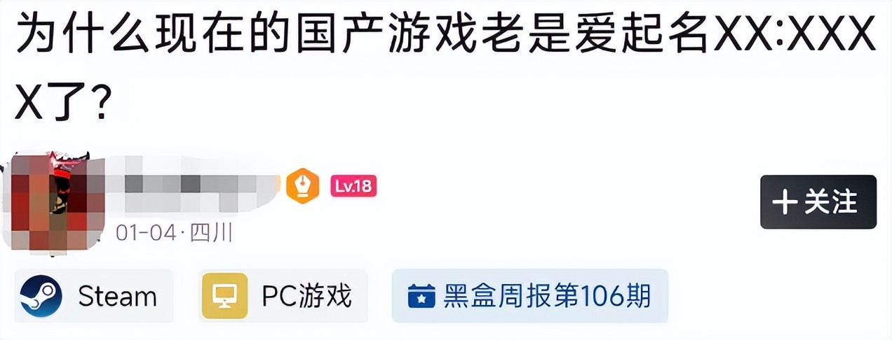 记得在几个月前,游戏社区里逐渐兴起一种讨论和质疑,说“国产游戏起名为什么总是《12:3456》”,将这定义为一种“公式”并大范围传播。我觉得这传达的是一种国内玩家共同的,对“国产游戏正在同质化”这一命题的焦虑,同样的问题有很多,比如“魂游”“抄袭”“武侠”等。