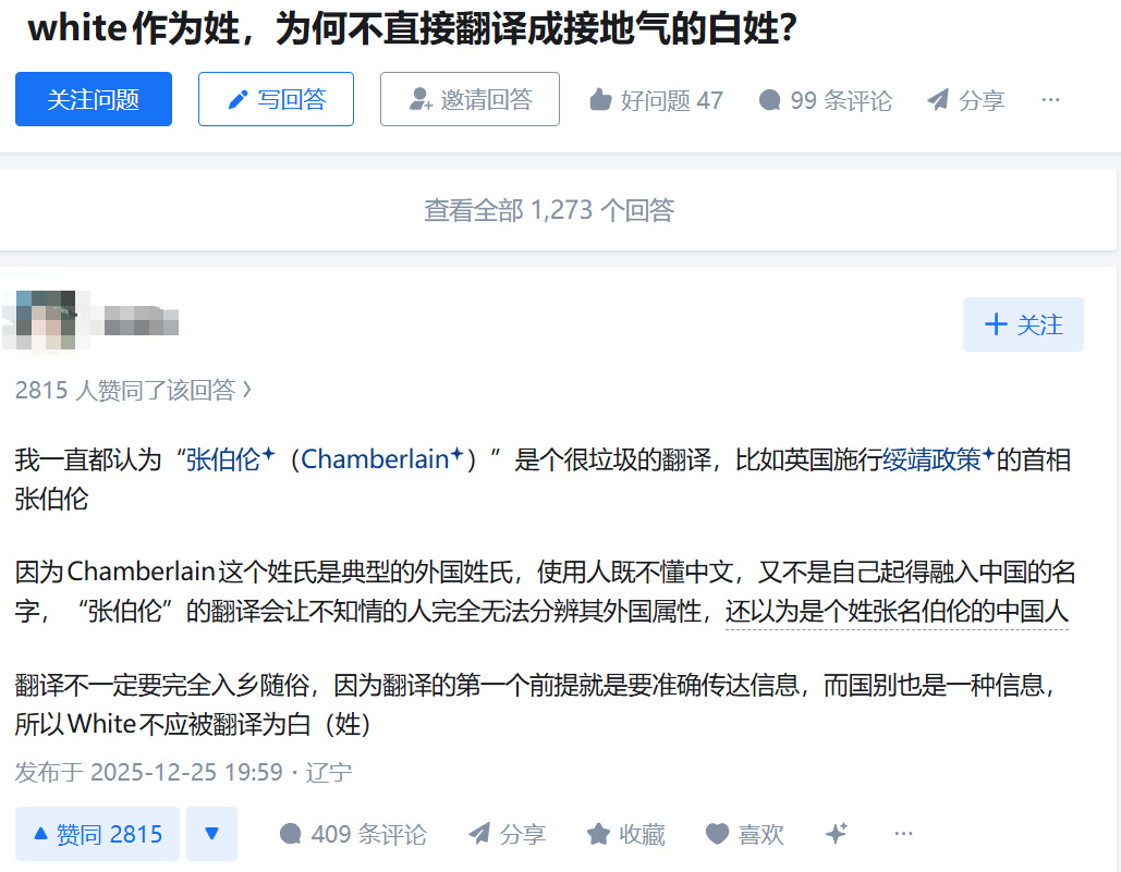 像之前知乎给我推了个问题:“为什么White这个姓不翻译成白,而是翻译成怀特”。