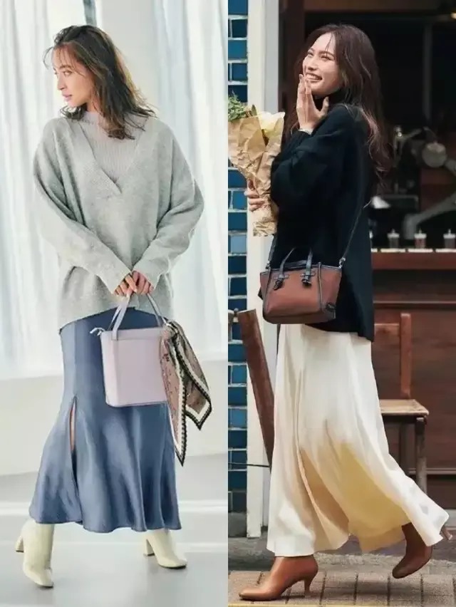想要轻松拿捏春日的氛围感,我们懂得做减法,搭配很重要,配色不要过于花哨,直接选择作为基础的灰色毛衣,搭配上雾霾蓝的真丝半裙,脚上穿的白色的短靴,就能显得精致洋气。