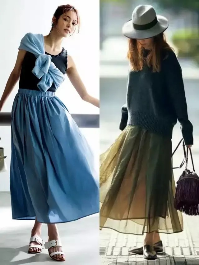 春日里,毛衣与半裙便是女性们温柔的底气,雾霾蓝针织上衣上白色的伞裙清雅柔和,再以细腰带来勾勒腰线,身姿便有了利落的线条。