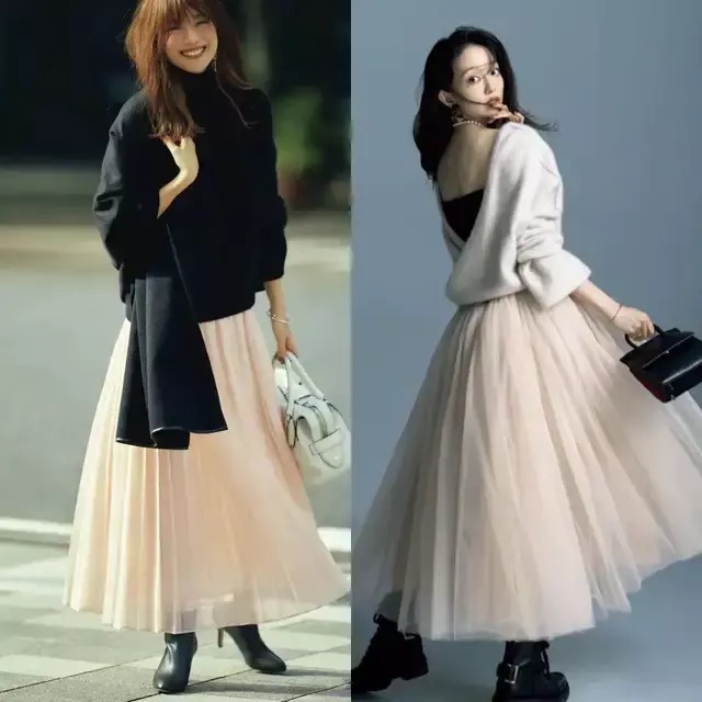 肉色偏爱独特韵味,紫色毛衣配上紫色伞裙,深浅交织,温柔里藏着一抹神秘,时尚低调又出众。