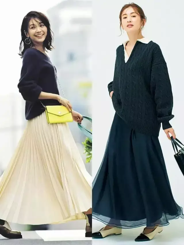 也可以选择一双拼接色的单鞋,搭配上藏蓝色的伞裙和黑色的毛衣组合搭配,能打破整体穿搭的沉闷与枯燥。