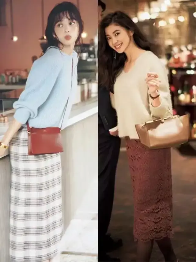 也可以选择白色的针织毛衣搭配上镂空设计的蕾丝直筒半裙,这样的穿搭更显温柔有女人味,呈现出大女主的气质感。