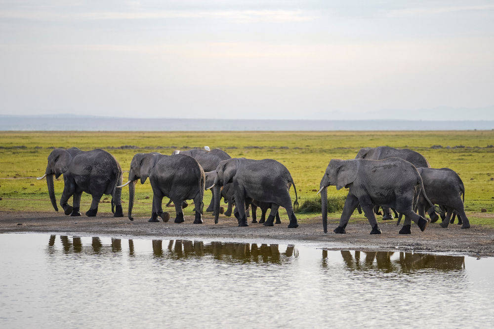 庞大的身躯、整齐的队伍,象群震慑人心的压迫感与温顺柔和的气质形成极为矛盾的美感。那一刻,所有人都不由得屏住了呼吸,静静欣赏这来自非洲的最原始、最壮阔的生命力。