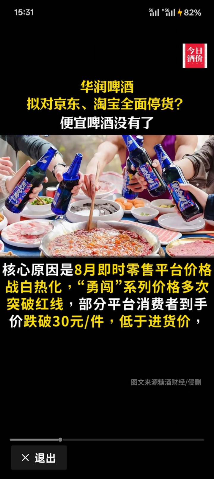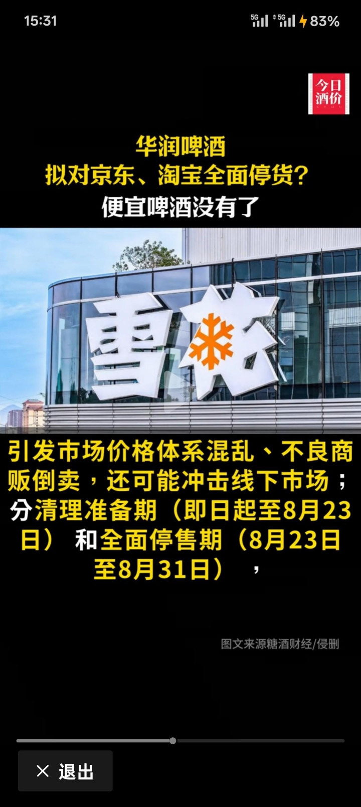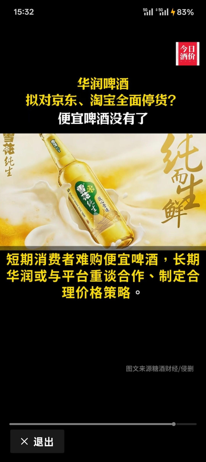 但华润雪花它有这个底气。它不是靠平台流量活着的那一类品牌,线下渠道根基深、供应链掌控力强,哪怕暂时退出几个线上即时零售渠道,也伤不到根本。